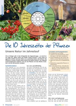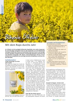 Der Unterrichtsbaustein „Die 10 Jahreszeiten der Pflanzen“ ab Seite 6 beleuchtet die etwas andere Einteilung des Jahres anhand der vielen kleinen Veränderungen an heimischen Pflanzen. Mit dem Thema „Blühende Ölfelder“ ab Seite 10 können Grundschüler außerdem den Raps – den wichtigsten Öllieferanten Deutschlands – durchs Jahr begleiten. Einen Ausblick auf die Herausforderungen der modernen Pflanzenzüchtung gestattet das Thema „Pflanzen für die Zukunft“ für die Sekundarstufe.