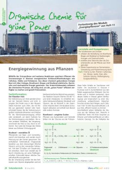 In dieser Ausgabe legen wir mit drei von vier Unterrichtsbausteinen erstmals einen Schwerpunkt auf Material für die Sekundarstufe. Der Beitrag zum Titelthema „Organische Chemie für grüne Power“ knüpft an den Unterrichtsbaustein „Energiepflanzen“ aus unserem 11. Heft an und erläutert die chemischen Vorgänge bei der Energiegewinnung aus Pflanzen. Passend dazu möchten wir Sie anregen, mit Ihrer Klasse oder AG am bundesweiten Schulwettbewerb „Energie pflanzen!“ teilzunehmen. Weitere Informationen und Ideen finden Sie in dem beiliegenden Faltblatt sowie in unserer Rubrik „Nachgedacht und mitgemacht“.