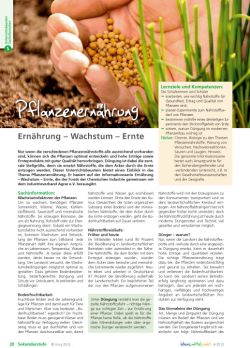 Die anderen beiden Bausteine für die Sekundarstufe gehen in der Produktionskette mehrere Schritte zurück und widmen sich den Themen Pflanzenernährung und Pflanzenzüchtung . Denn für den Anbau bzw. die Ernte von Lebens- und Futtermitteln braucht es ertragreiche widerstandsfähige Sorten und eine gute Nährstoffversorgung. Die Bausteine erläutern Aspekte zur Düngung wie Wachstumsfaktoren, Bodenfruchtbarkeit und Düngerarten sowie Grundlagen der (Molekular-)Genetik und den aufwendigen Weg einer Neuzüchtung am Beispiel von Kartoffelsorten.