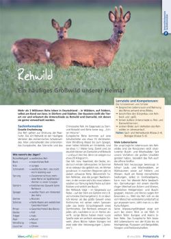Windfang und Spiegel, Spieße und Stangen sind Begriffe, die Kinder kaum mit Tieren in Verbindung bringen. Und doch sind es gebräuchliche Bezeichnungen für Nase, Hinterteil und die Geweihe der Rehe, dem weit verbreiteten Großwild in Deutschland. Mehr als drei Millionen Tiere leben in unseren Wäldern und können gerade jetzt im Frühjahr beobachtet werden, wenn sie über Felder streifen oder wenn sich die Böcke die Basthaut ihrer nachgewachsenen Geweihe an Bäumen abfegen. Ein beeindruckendes Naturschauspiel, dem die neue Ausgabe vom i.m.a-Lehrermagazin "lebens.mittel.punkt" ein umfassendes Kapitel für den Unterricht in der Primarstufe widmet.