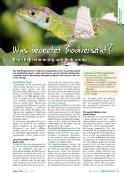 Der sperrige Begriff "Biodiversität" wird in einem Unterrichtsbaustein für die Sekundarstufe behandelt. Von der Artenvielfalt bis zu "Ökosystemdienstleistungen" reichen die Aspekte dieses Themas, die anschaulich vermittelt und mit Arbeitsblättern für den Unterricht aufbereitet wurden.