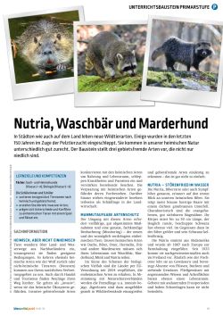 Auf Interesse bei Grundschülern dürften auch Marderhund, Nutria und Waschbär treffen. Mit dem Unterrichtsbaustein zu den auf den ersten Blick possierlichen Tieren wird auch darüber aufgeklärt, welchen Einfluss die hierzulande gebietsfremden Tiere auf unsere Umwelt haben.