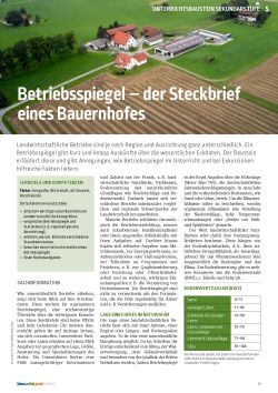 Geografische und wirtschaftliche Faktoren beeinflussen maßgeblich die Entwicklung der Landwirtschaft. Deren Vielfalt und Wandel wird beim konkreten Vergleich einzelner Betriebe deutlich. Der zweite Unterrichtsbaustein für die Sekundarstufe zeigt daher, was sich aus einem „Betriebsspiegel“ alles lernen lässt. Solche Steckbriefe bieten in Kürze die wichtigsten Eckdaten zum Hof, seiner Ausrichtung und seinen Besonderheiten.