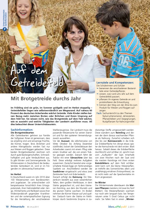 Im Frühling sind sie grün, im Sommer goldgelb und im Herbst stoppelig - Getreidefelder liegen wie selbstverständlich am Wegesrand. Auf nahezu 60 Prozent des deutschen Ackerlandes wächst Getreide. Viele Kinder stellen keinen Bezug mehr zwischen Broten oder Brötchen und ihrem Ursprung auf dem Feld her. Sie wissen nicht, wie das Brotgetreide auf dem Feld wächst, wie es aussieht und welche Tätigkeiten der Landwirt ausführen muss. All dies beleuchtet dieser Unterrichtsbaustein.