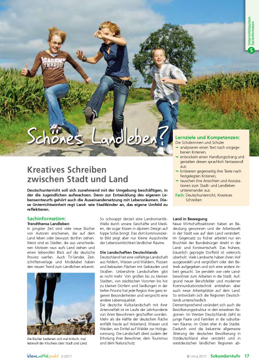 Deutschunterricht soll sich zunehmend mit der Umgebung beschäftigen, in der die Jugendlichen aufwachsen. Denn zur Entwicklung des eigenen Lebensentwurfs gehört auch die Auseinandersetzung mit Lebensräumen. Diese Unterrichtseinheit regt Land- wie Stadtkinder an, das eigene Umfeld zu reflektieren.