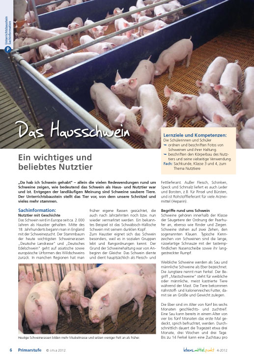 "Da hab ich Schwein gehabt" - allein die vielen Redewendungen rund um Schweine zeigen, wie bedeutend das Schwein als Haus- und Nutztier war und ist. Entgegen der landläufigen Meinung sind Schweine saubere Tiere. Der Unterrichtsbaustein stellt das Tier vor, von dem unsere Schnitzel und vieles mehr stammen.