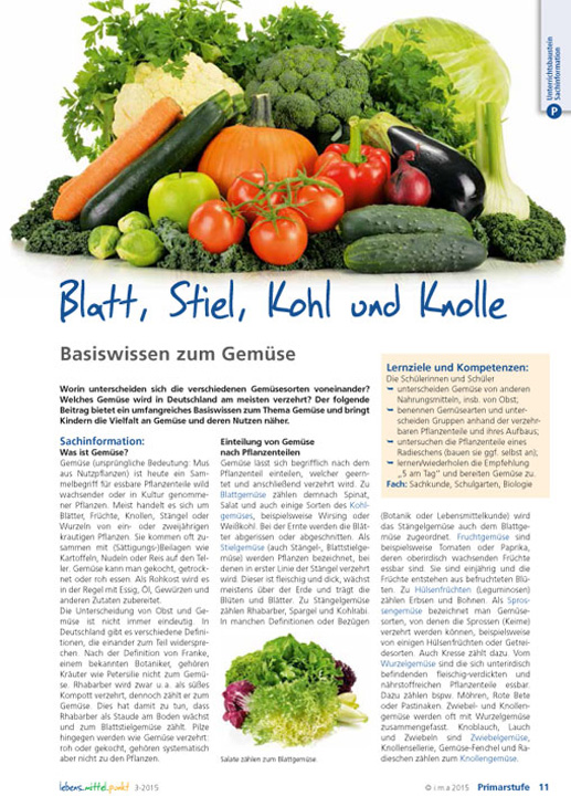 Worin unterscheiden sich die verschiedenen Gemüsesorten voneinander? Welches Gemüse wird in Deutschland am meisten verzehrt? Der folgende Beitrag bietet ein umfangreiches Basiswissen zum Thema Gemüse und bringt Kindern die Vielfalt an Gemüse und deren Nutzen näher.