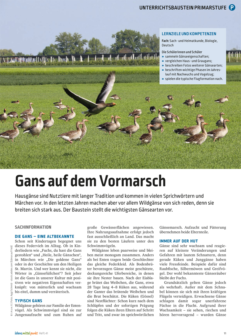 Hausgänse sind Nutztiere mit langer Tradition und kommen in vielen Sprichwörtern und Märchen vor. In den letzten Jahren machen aber vor allem Wildgänse von sich reden, denn sie breiten sich stark aus. Der Baustein stellt die wichtigsten Gänsearten vor.