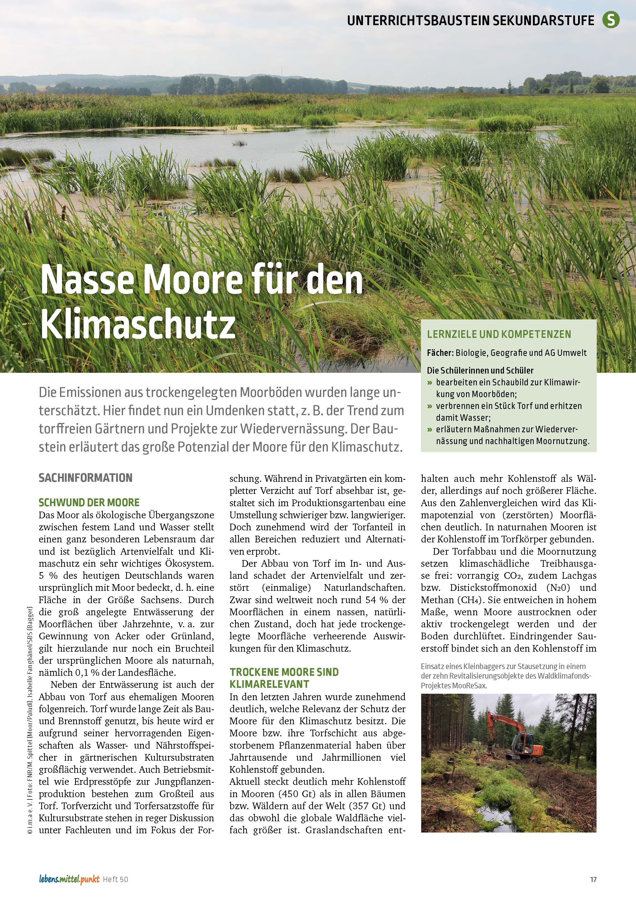 Die Emissionen aus trockengelegten Moorböden wurden lange unterschätzt. Hier findet nun ein Umdenken statt, z. B. der Trend zum torffreien Gärtnern und Projekte zur Wiedervernässung. Der Baustein erläutert das große Potenzial der Moore für den Klimaschutz.