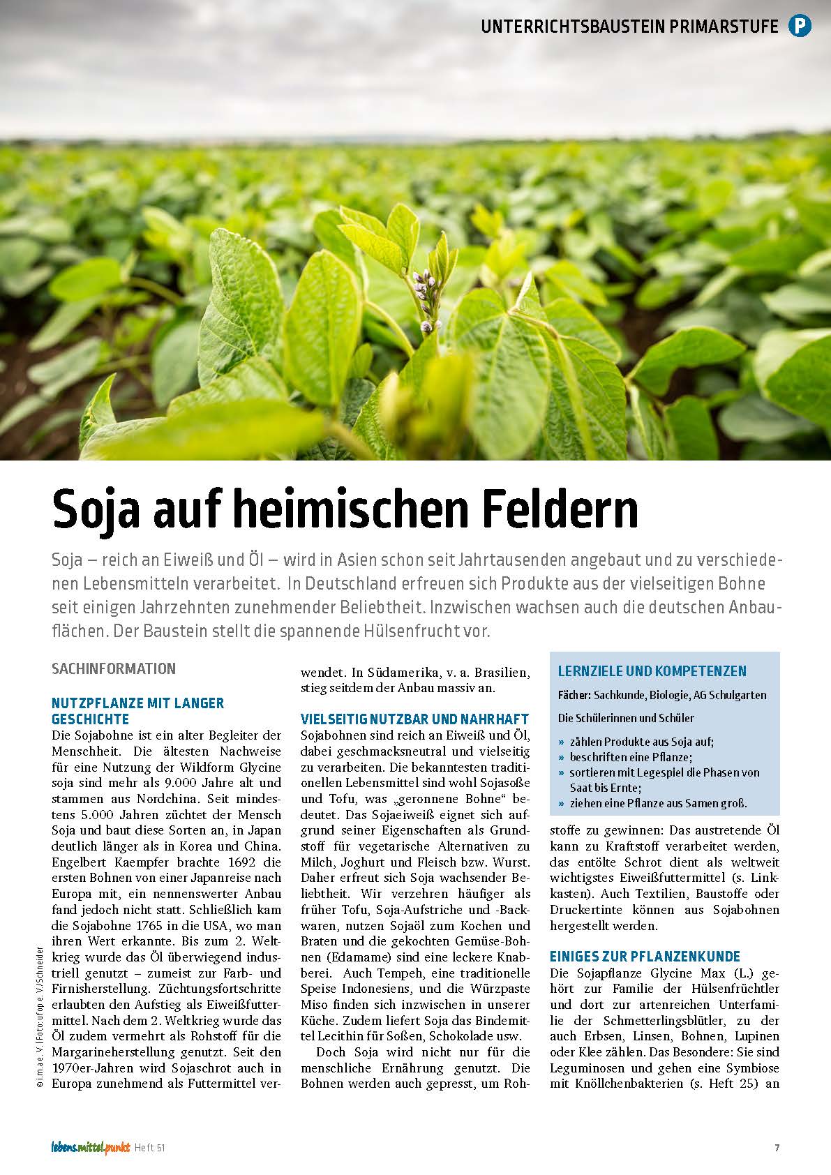Soja – reich an Eiweiß und Öl – wird in Asien schon seit Jahrtausenden angebaut und zu verschiedenen Lebensmitteln verarbeitet. In Deutschland erfreuen sich Produkte aus der vielseitigen Bohne seit einigen Jahrzehnten zunehmender Beliebtheit. Inzwischen wachsen auch die deutschen Anbauflächen. Der Baustein stellt die spannende Hülsenfrucht vor.