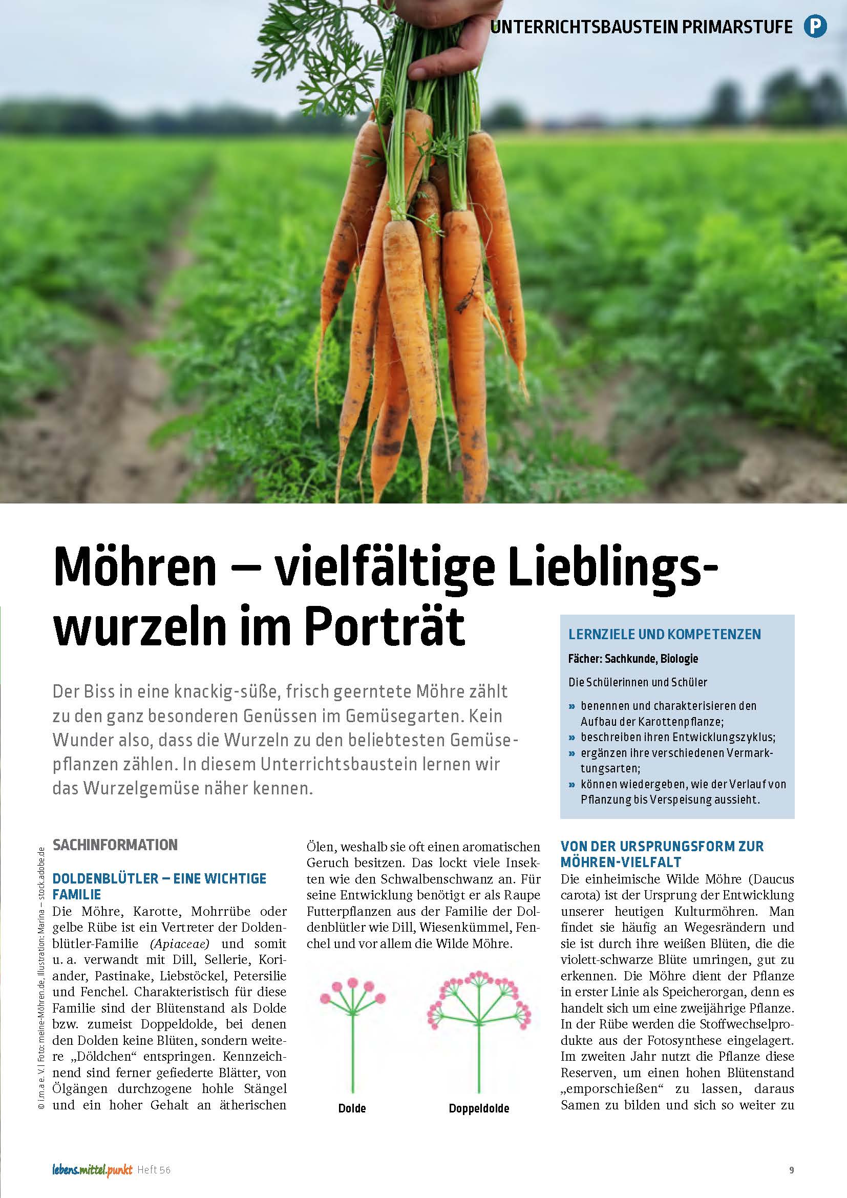Der Biss in eine knackig-süße, frisch geerntete Möhre zählt zu den ganz besonderen Genüssen im Gemüsegarten. In diesem Unterrichtsbaustein lernen wir das Wurzelgemüse näher kennen. Download mit Extrablättern.