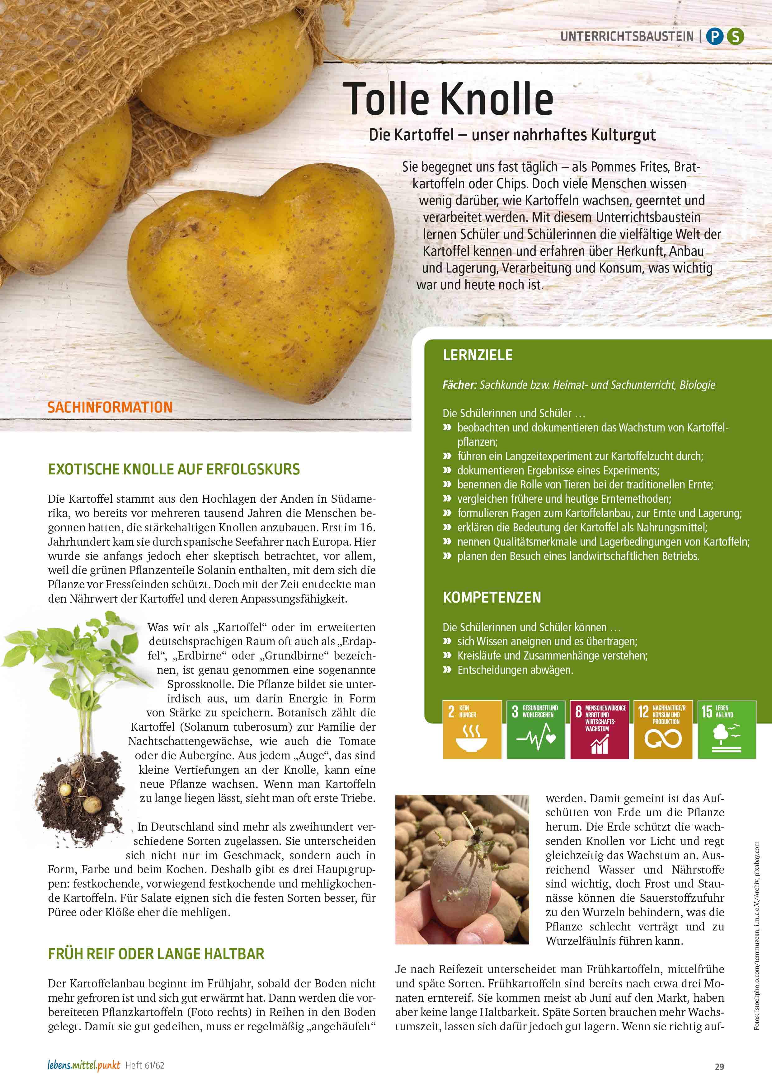 Sie begegnet uns fast täglich – als Pommes Frites, Bratkartoffeln oder Chips. Doch viele Menschen wissen wenig darüber, wie Kartoffeln wachsen, geerntet und verarbeitet werden. Mit diesem Unterrichtsbaustein lernen Schüler und Schülerinnen die vielfältige Welt der Kartoffel kennen und erfahren über Herkunft, Anbau und Lagerung, Verarbeitung und Konsum, was wichtig war und heute noch ist.