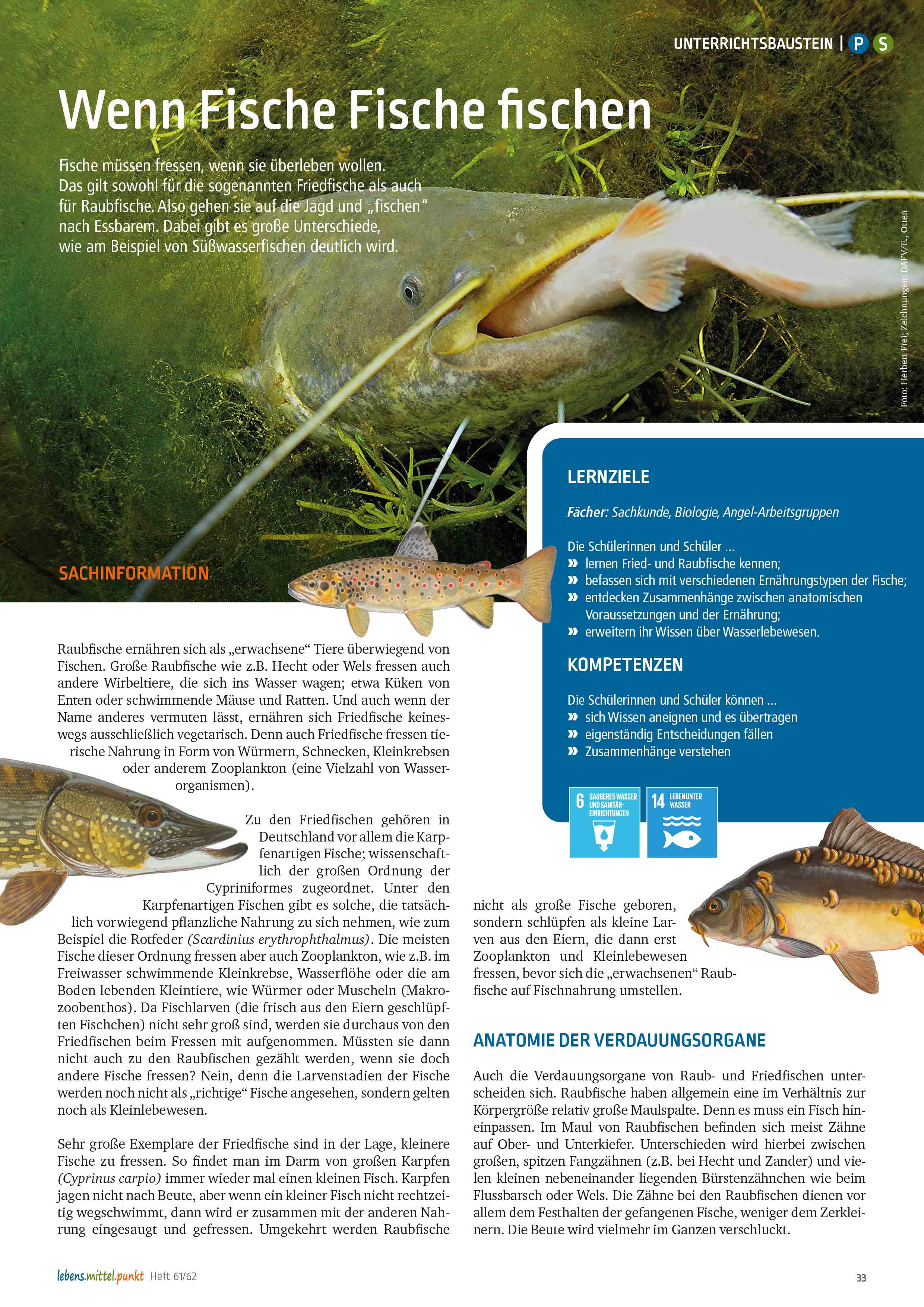 Fische müssen fressen, wenn sie überleben wollen. Das gilt sowohl für die sogenannten Friedfische als auch für Raubfische. Also gehen sie auf die Jagd und „fischen“ nach Essbarem. Dabei gibt es große Unterschiede, wie am Beispiel von Süßwasserfischen deutlich wird.