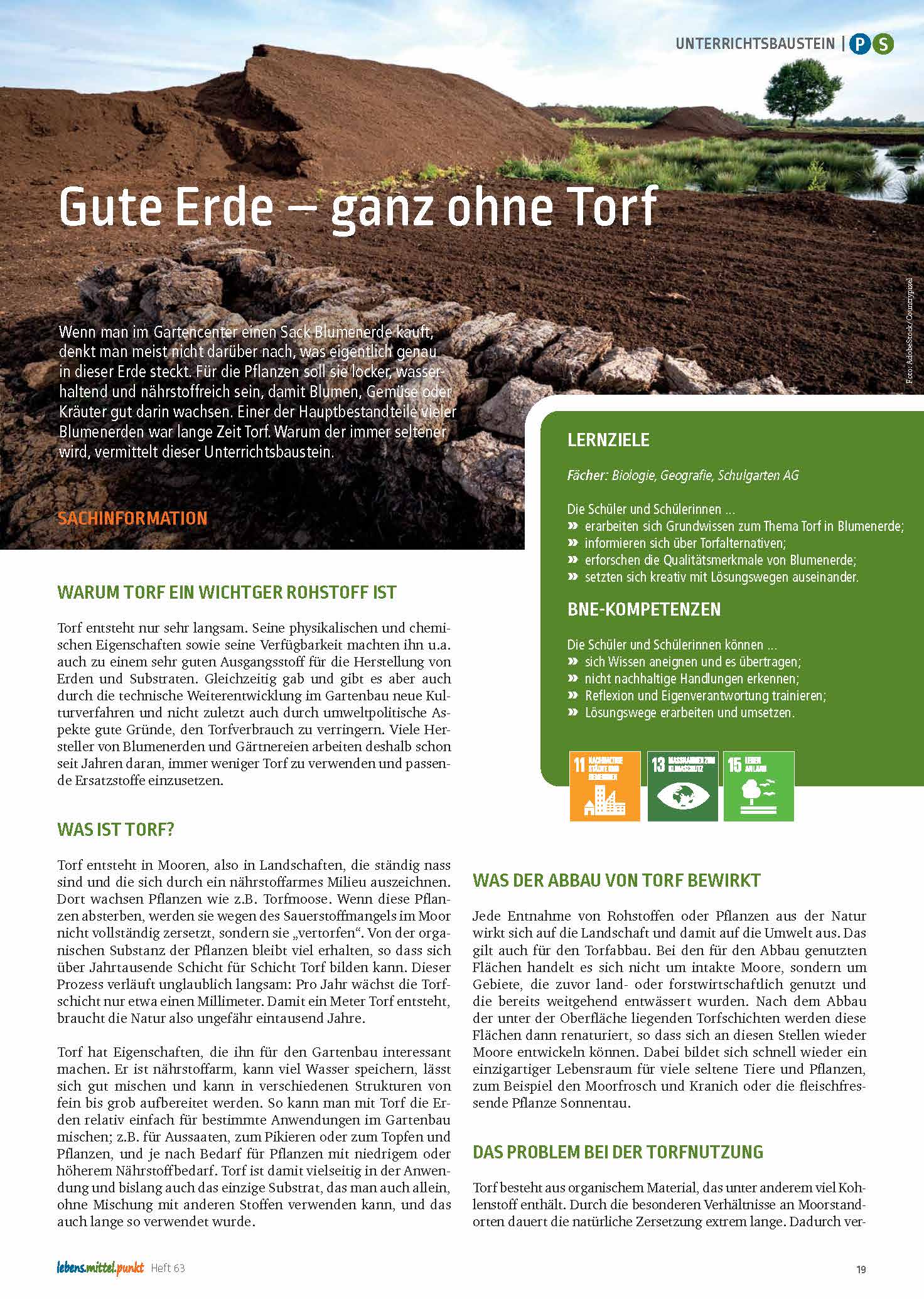 Wenn man im Gartencenter einen Sack Blumenerde kauft, denkt man meist nicht darüber nach, was eigentlich genau in dieser Erde steckt. Für die Pflanzen soll sie locker, wasserhaltend und nährstoffreich sein, damit Blumen, Gemüse oder Kräuter gut darin wachsen. Einer der Hauptbestandteile vieler Blumenerden war lange Zeit Torf. Warum der immer seltener wird, vermittelt dieser Unterrichtsbaustein.