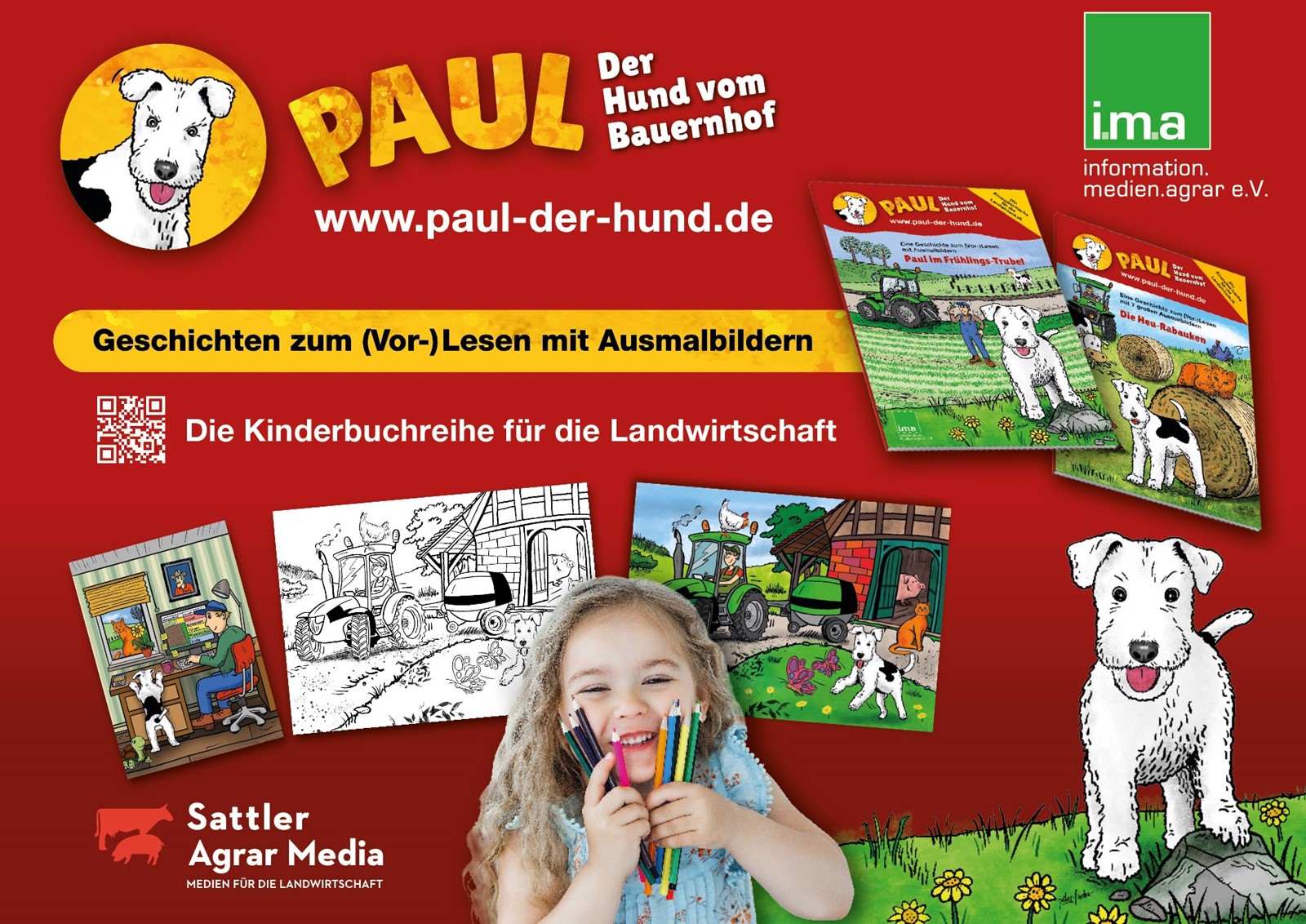 So hat der i.m.a e.V. auch bereits mehrfach an der Norla teilgenommen, weil dort z.B. einen Lehrerkongress begleitet, eine Schülerpressekonferenz organisiert oder sein Mal- und Vorleseheft „Paul, der Hund vom Bauernhof“ erstmals beim jungen Publikum getestet hat. In diesem Jahr kommt der kleine Foxterrier „Paul“ wieder an den Ort zurück, an dem er erstmals das Licht der Landwirtschaft erblickt hat. Er begleitet dabei die i.m.a-Partner von Sattler Agrar Media, die mit ihrem Bollerwagen über das Messegelände ziehen, um auch „Paul“ noch bekannter zu machen.